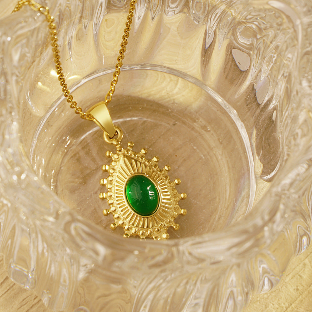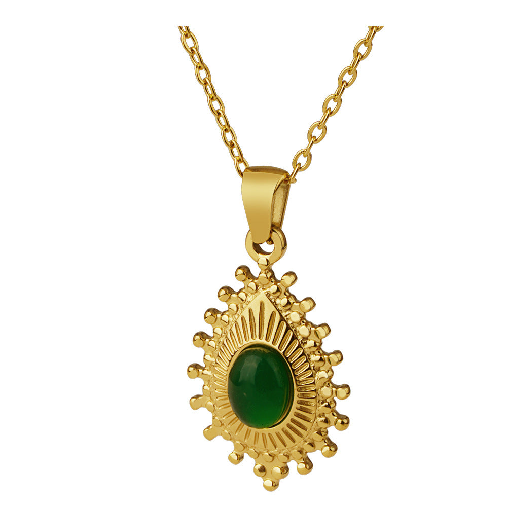 Women's Retro Emerald Oval Personalized Stainless Steel Necklaces