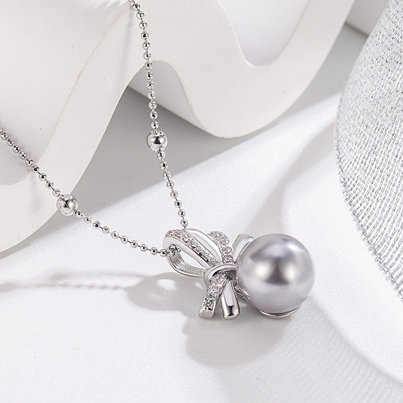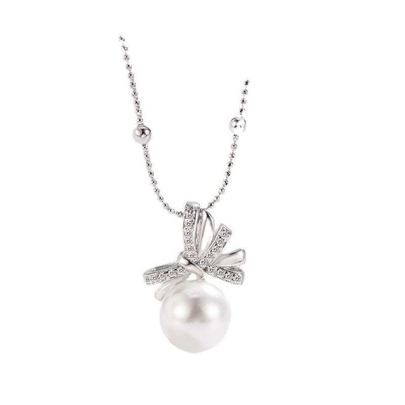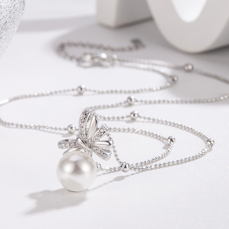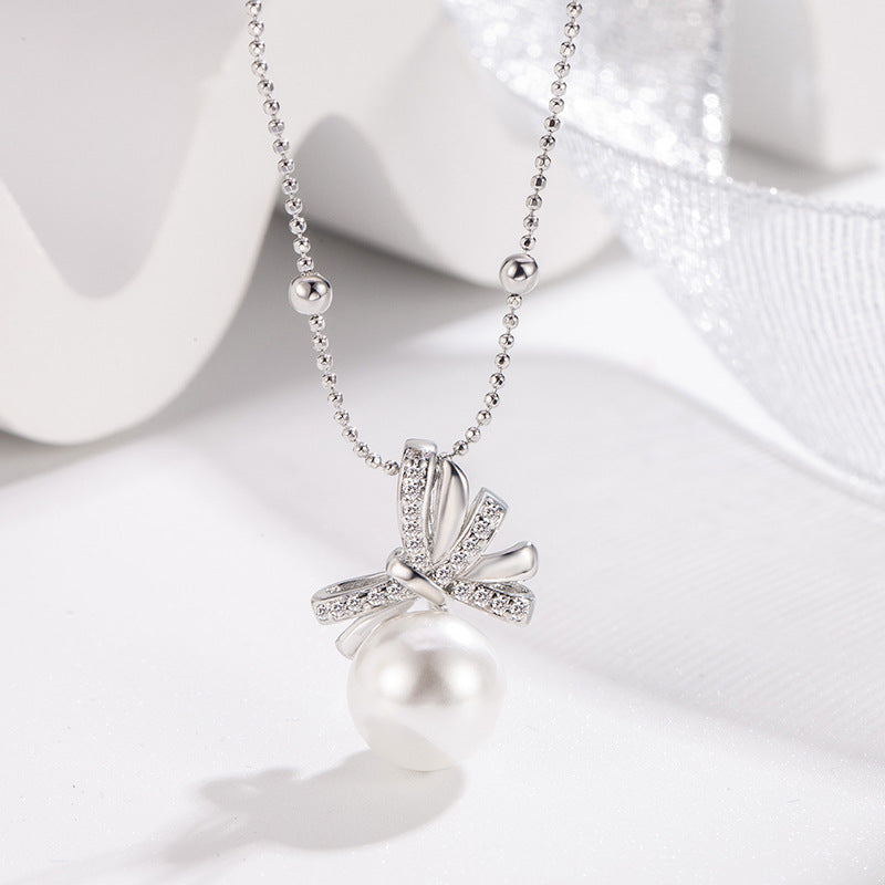 Women's Ribbon Bow Pearl Classic Sier High-grade Clavicle Necklaces