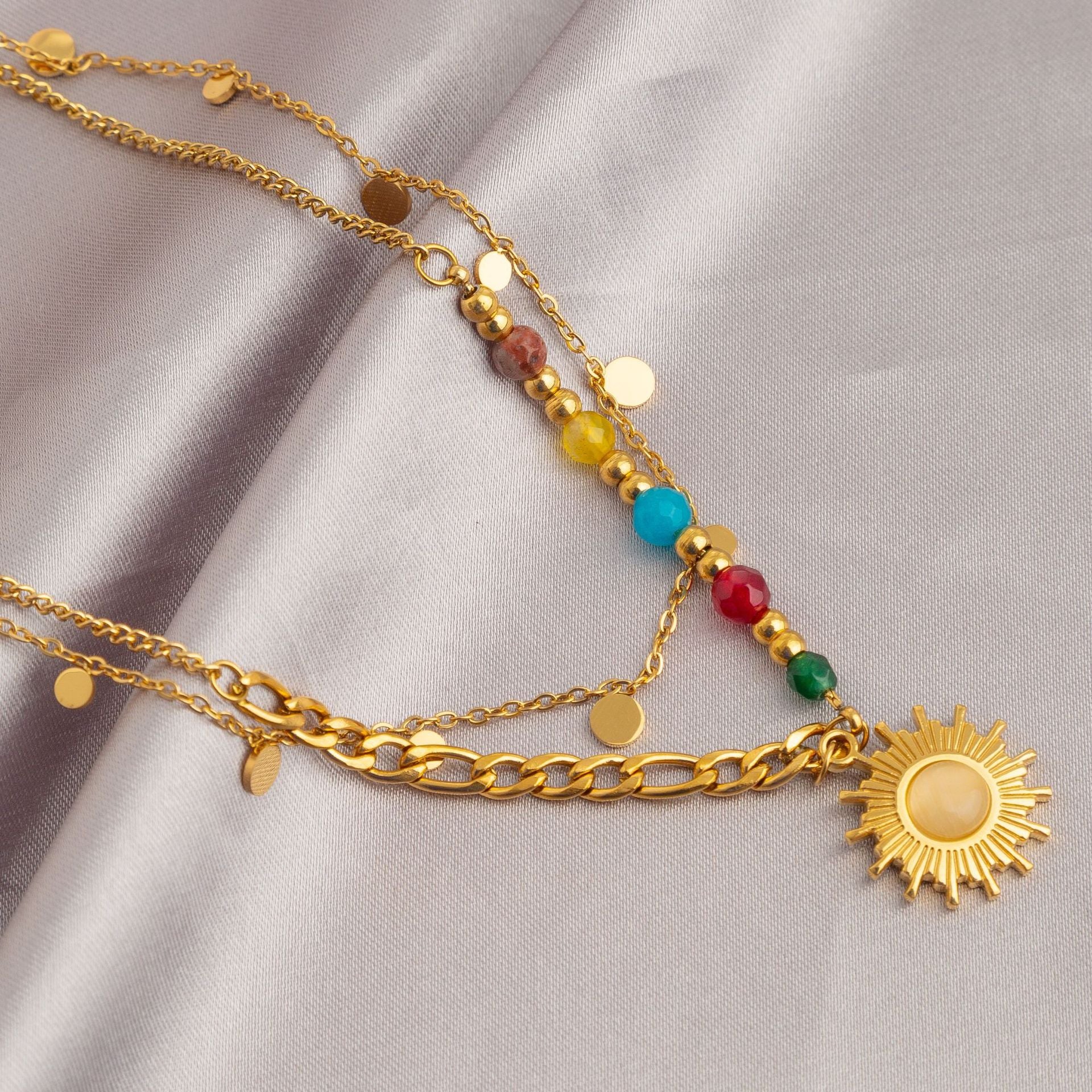 Women's Round Slice French Retro Beaded Sunflower Necklaces