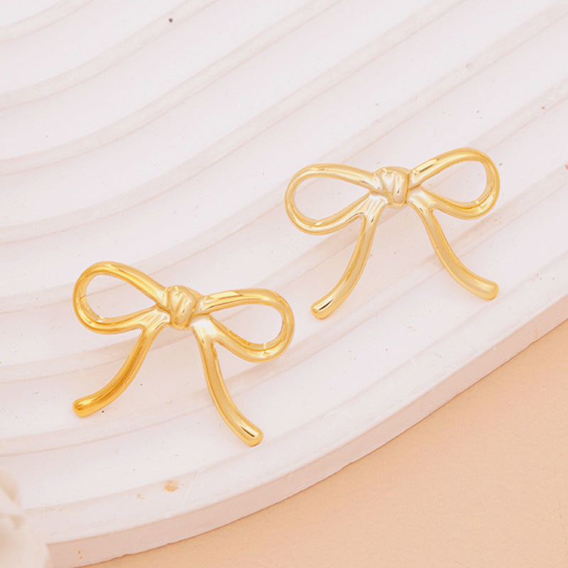 Women's Sier Color Bowknot Round Acrylic High-grade Light Earrings