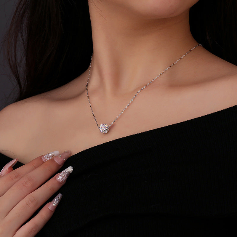 Women's Sier Crystal Ball Simple High Sense Personalized Necklaces