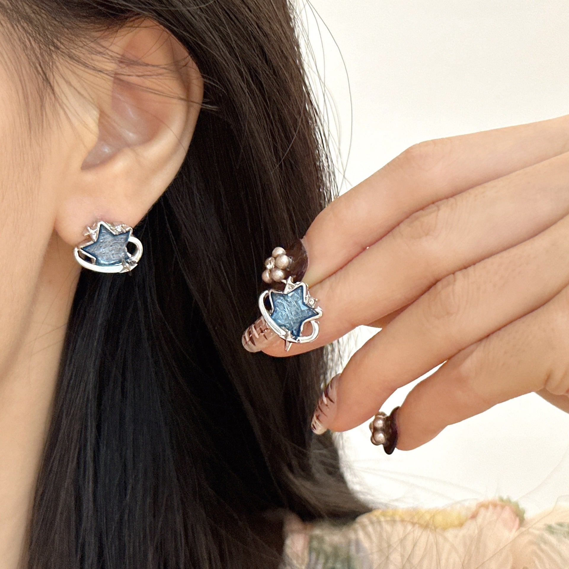 Women's Sier Needle Blue Star Ear Niche Earrings
