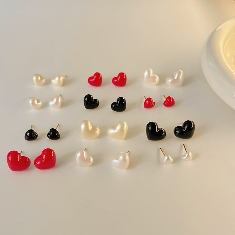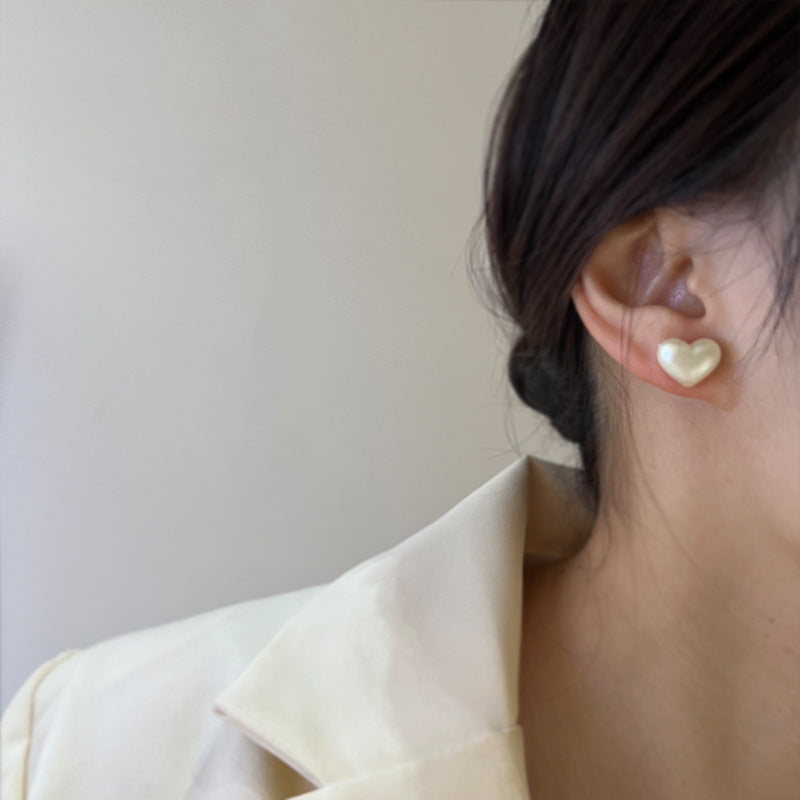 Women's Sier Needle Heart Pearl Fashionable Ear Earrings