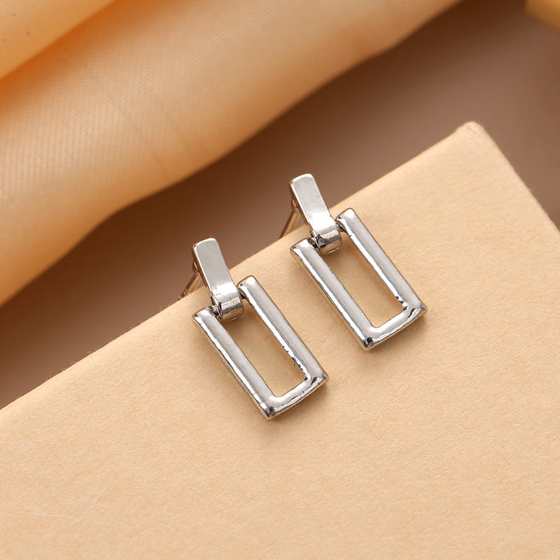 Women's Sier Needle Small Geometric Square Metallic Simple Special Earrings