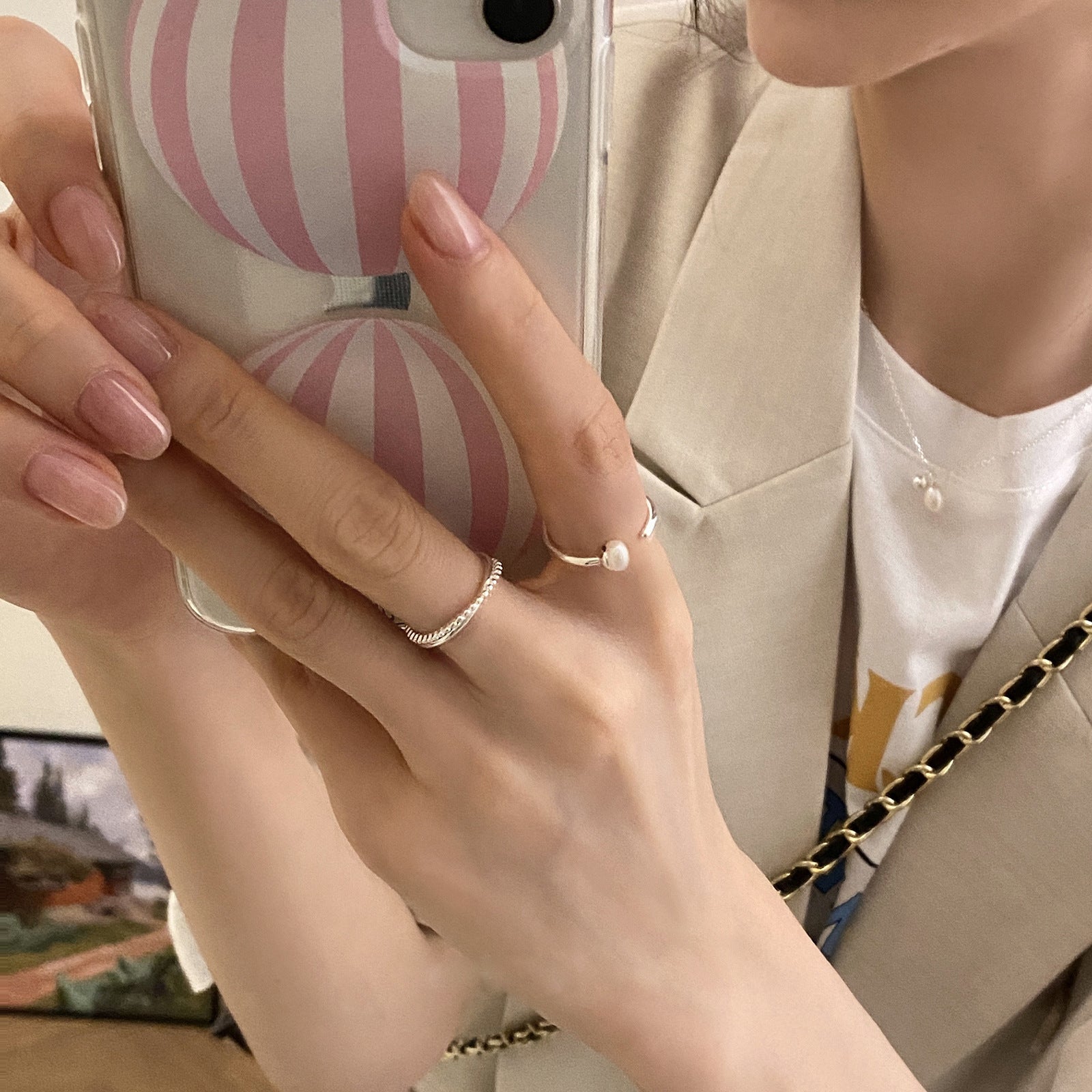 Women's Sier Open-end Pearl Special Interest Light Rings