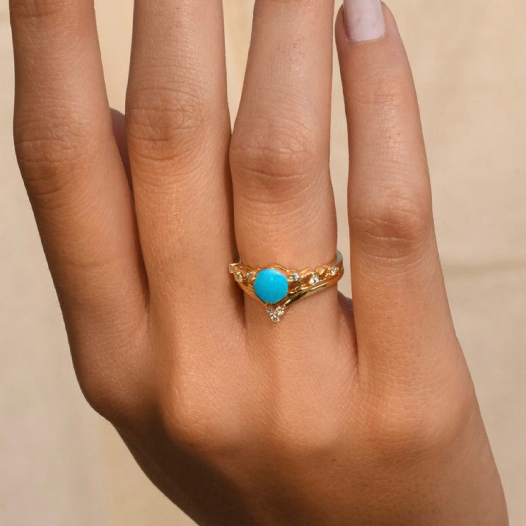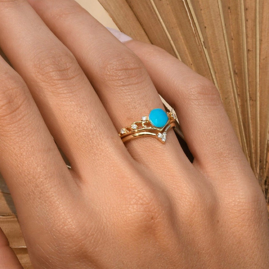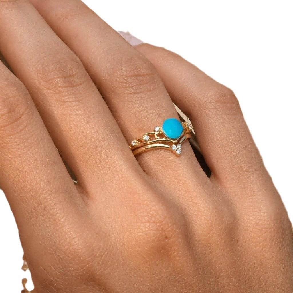 Women's Simple Fashion Couple Ornament Inlaid Lake Blue Rings