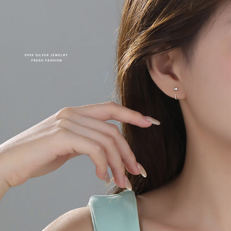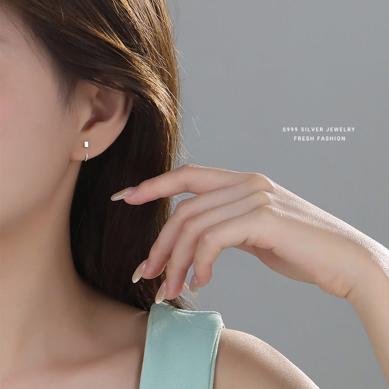 Women's Square Ear Hook Sterling Sier Fashion Ball Bead Earrings