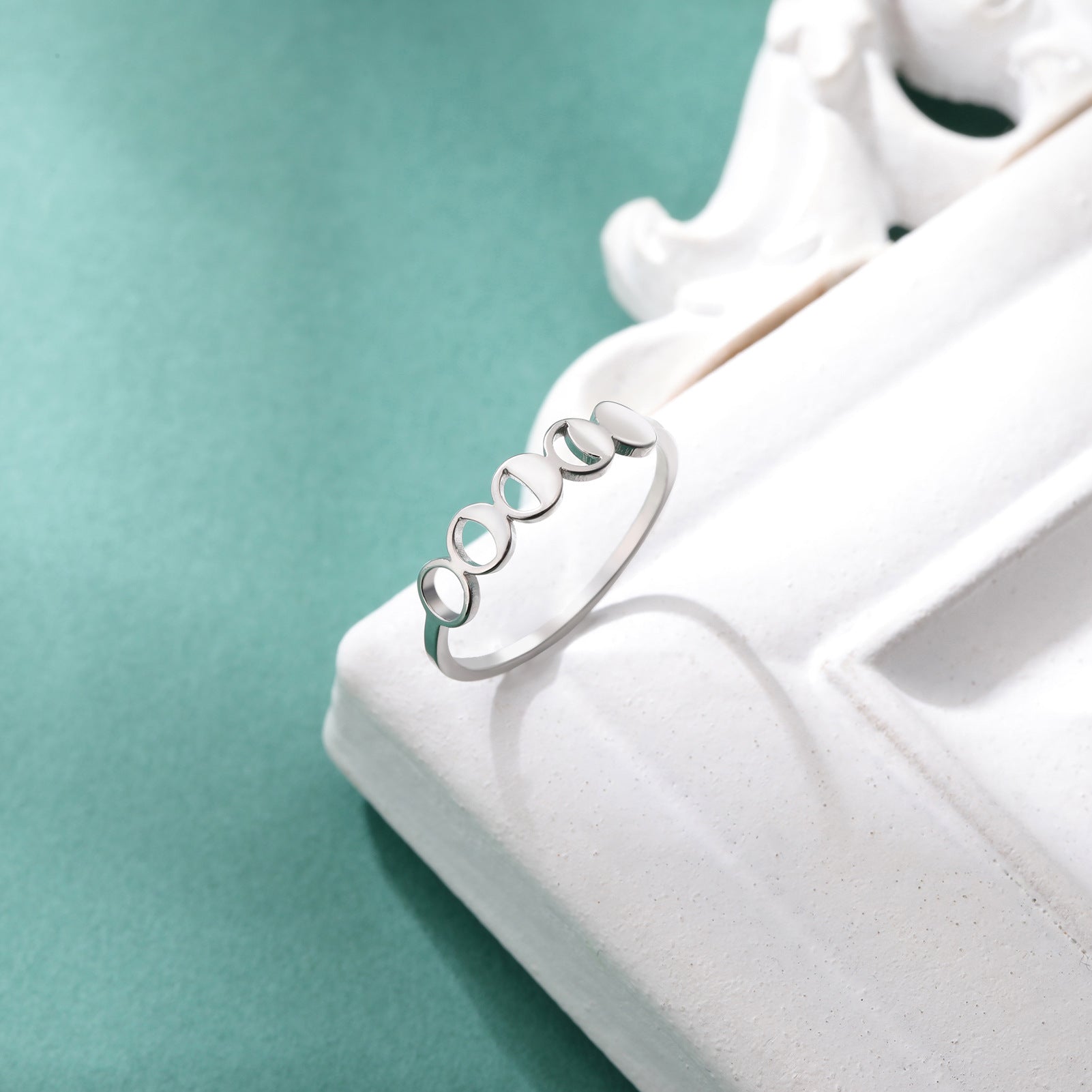 Women's Stainless Steel Moon Phase Minimalist Jewelry Rings