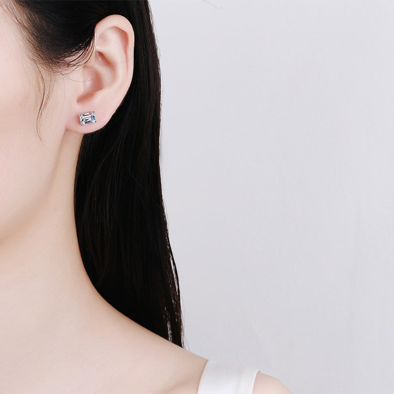 Women's Sterling Sier Inlaid Rectangular Chamfering Moissanite Earrings