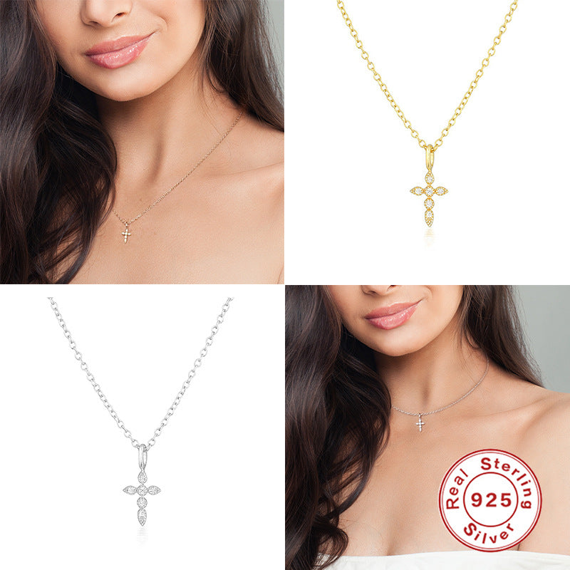 Women's Sterling Sier Light Luxury Cross Clavicle Necklaces