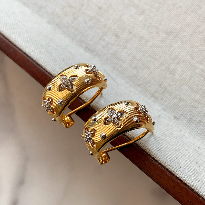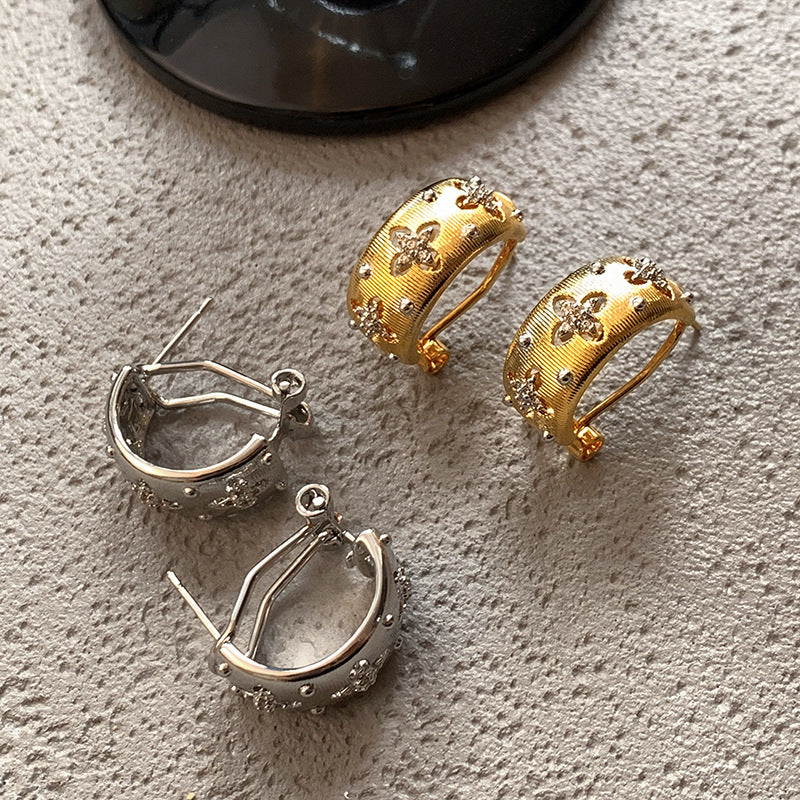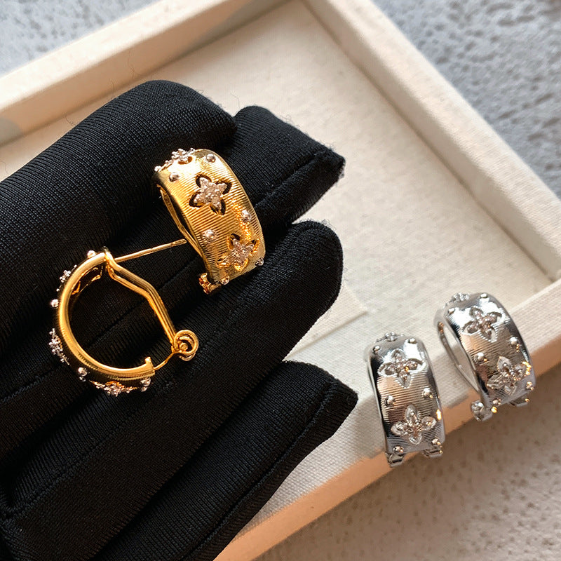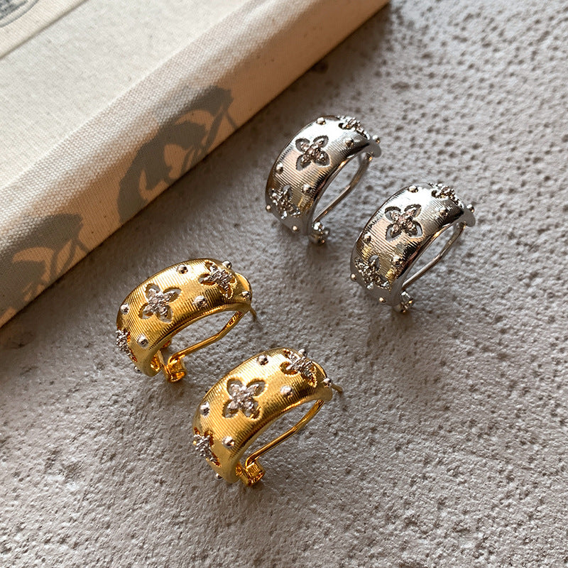 Women's Style Retro Metal Brushed Hollow Flower Earrings