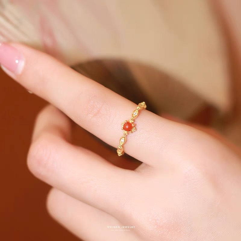 Women's Style South Red Light Luxury Open Inlaid Rings