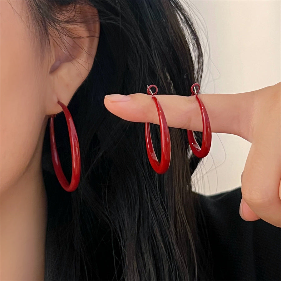 Women's Style Wine Red White Vintage Fashionable High-grade Earrings