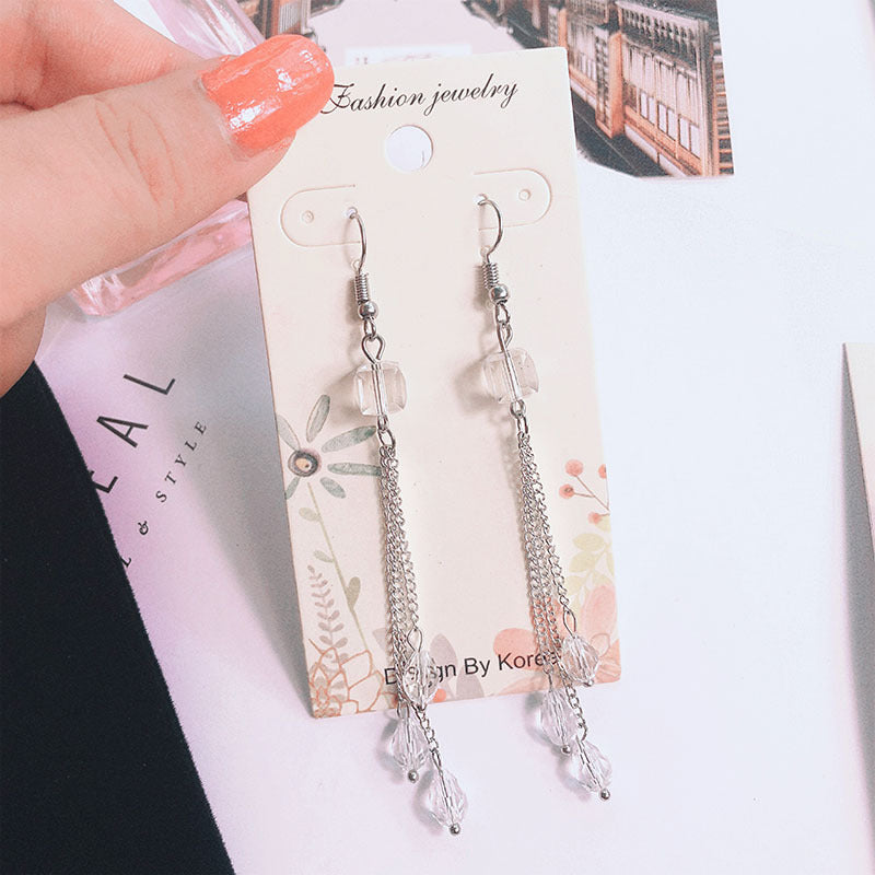 Women's Super Fairy Crystal Temperament Wild Long Earrings