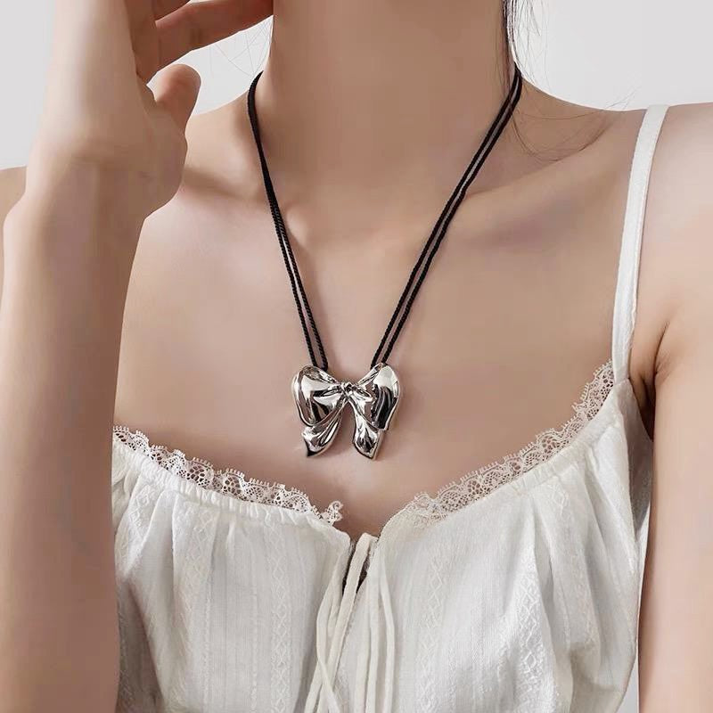 Women's Sweet Cool Style Metal Bow Elegant Necklaces