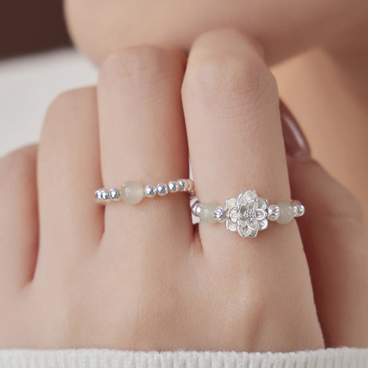 Women's True Her Natural Jade Sterling Sier Rings