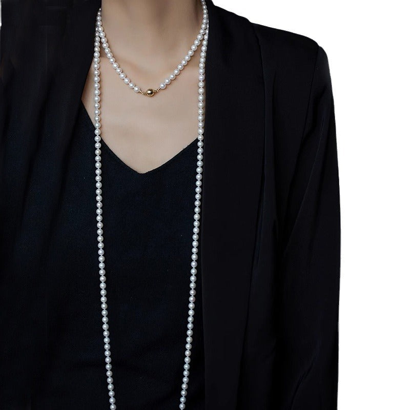 Women's Twin Pearl Long Beaded Sweater Chain Versatile High Necklaces