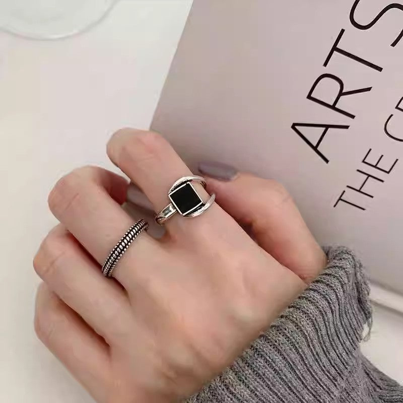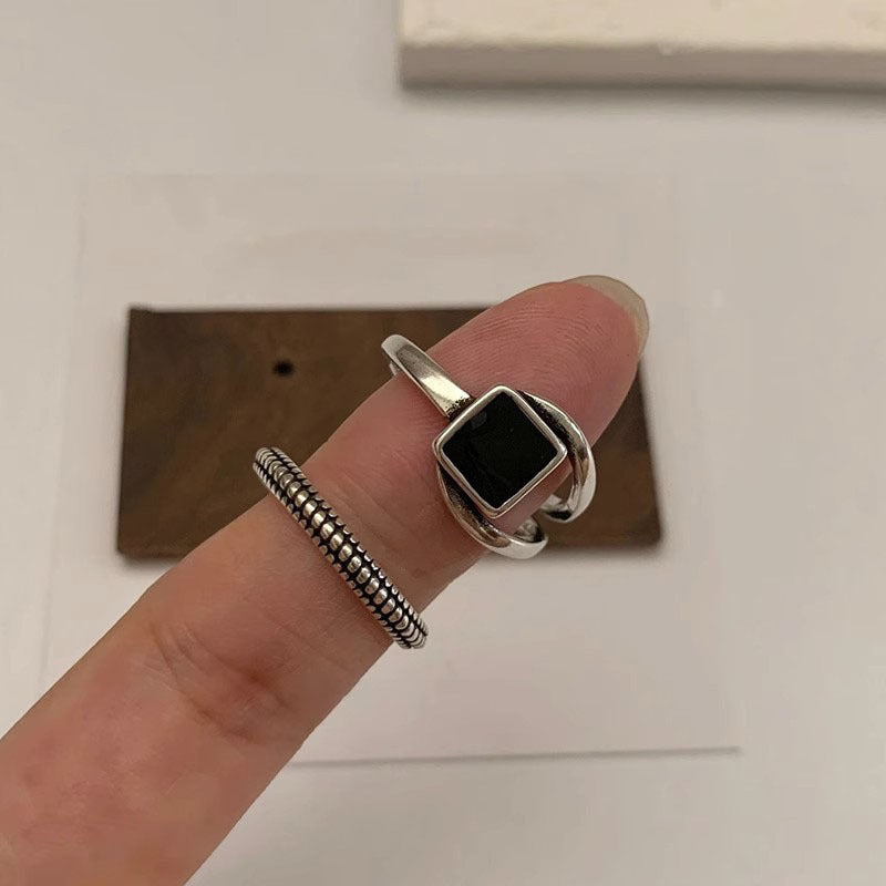 Women's Vintage Black Geometric Square For Minority Simple Rings