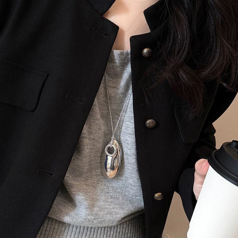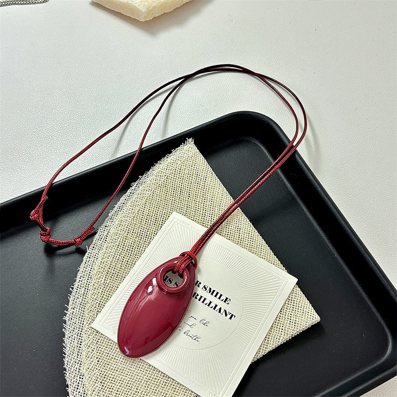 Color: Silver Silver Necklace, Silver Black Rope, Wine Red