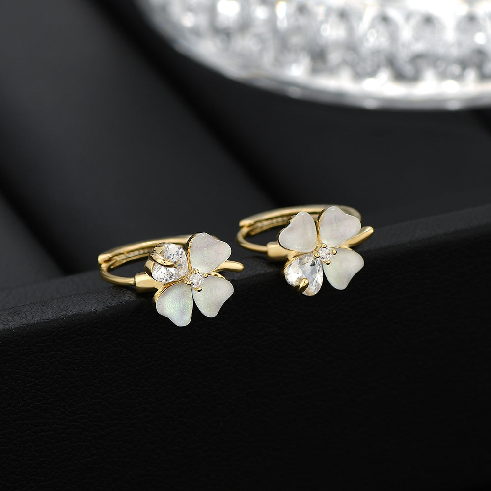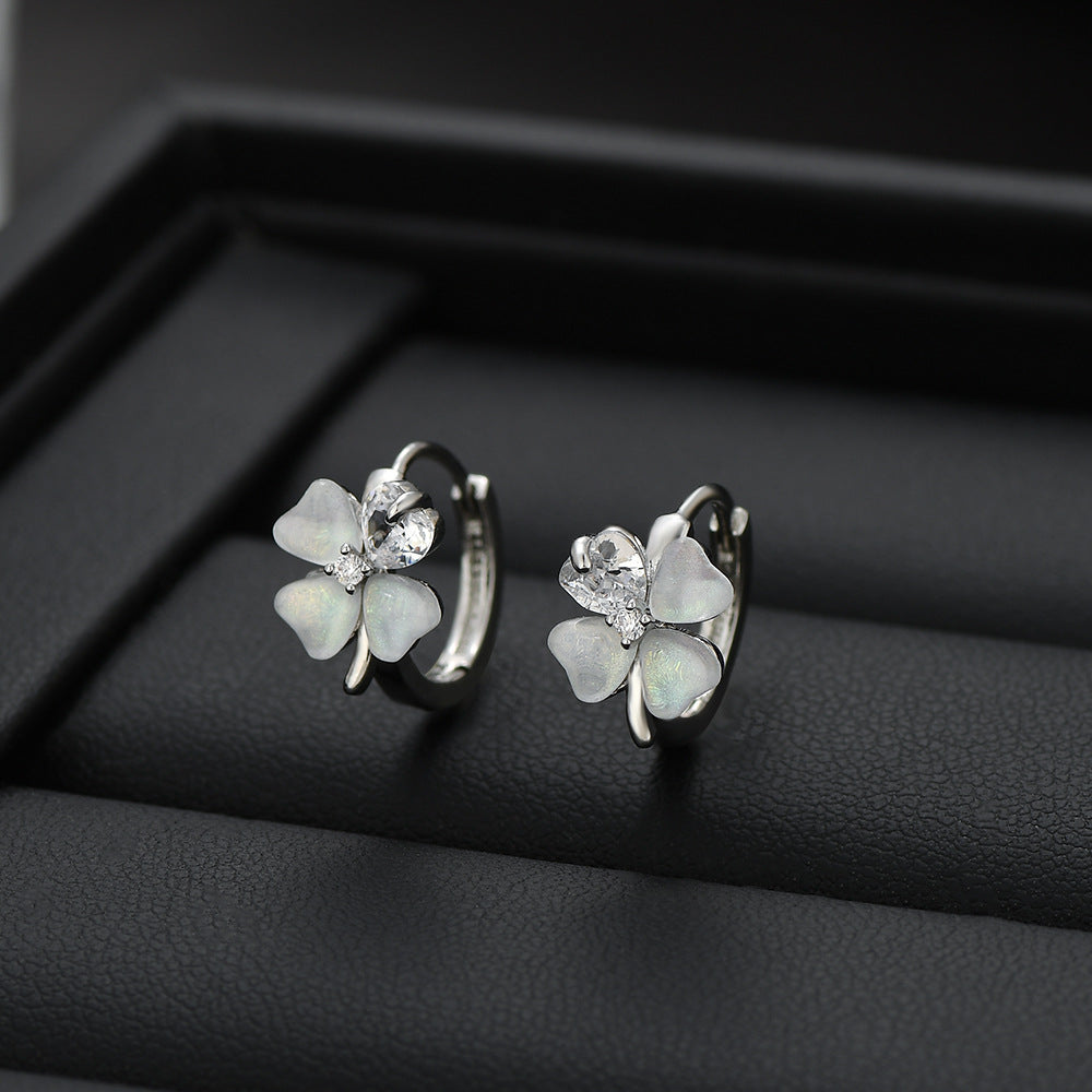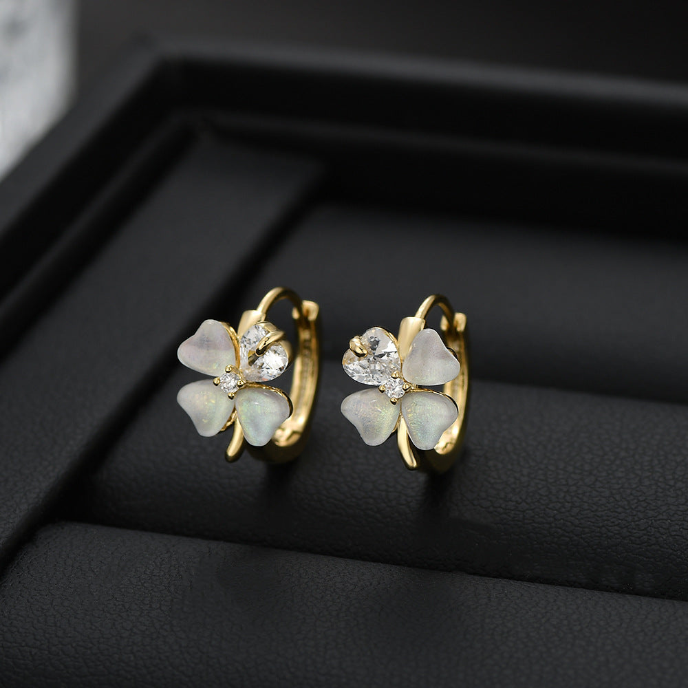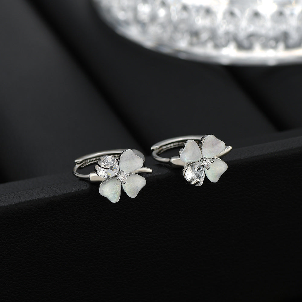 Zircon Personalized Female Niche Design Lucky Four-leaf Earrings